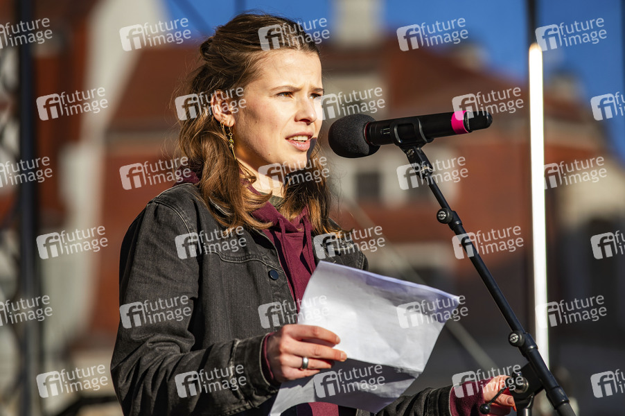 Großdemo, Aktion, Banner, Demo, Demonstrant, Demonstranten, Demonstrierende, Demonstration, Demonstrationszug, demonstrieren, Politik, Protestaktion, Demo, Protestdemo, Protestdemonstration, gegen Rechts, Rechtsextremismus, Kundgebung, gegen AfD, #ZusammenGegenRechts, #WirSindDieBrandmauer, Klimaschutz-Aktivistin, Publizistin