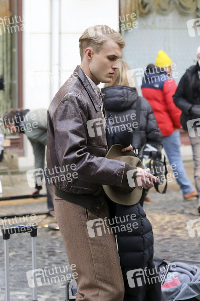 Ludwig Simon bei Dreharbeiten am Set für das TVNOW Serien-Drama'Torstraße 1' auf dem Marienplatz vor dem Kaufhaus. Görlitz, 27.10.2021