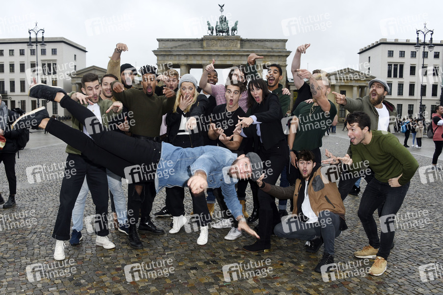 20 internationale Tänzer bei der Präsentation des Casts der Show 'Magic Mike Live' am Brandenburger Tor. Berlin, 08.10.2019