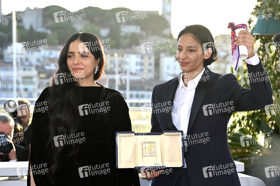 Hafsia Herzi und Nadia Melliti mit dem Preis für die beste Darstellerin in 'La petite dernière / The Little Sister' beim Photocall mit den Preisträgern auf dem Festival de Cannes 2025 / 78. Internationale Filmfestspiele von Cannes am Palais des Festivals. Cannes, 24.05.2025