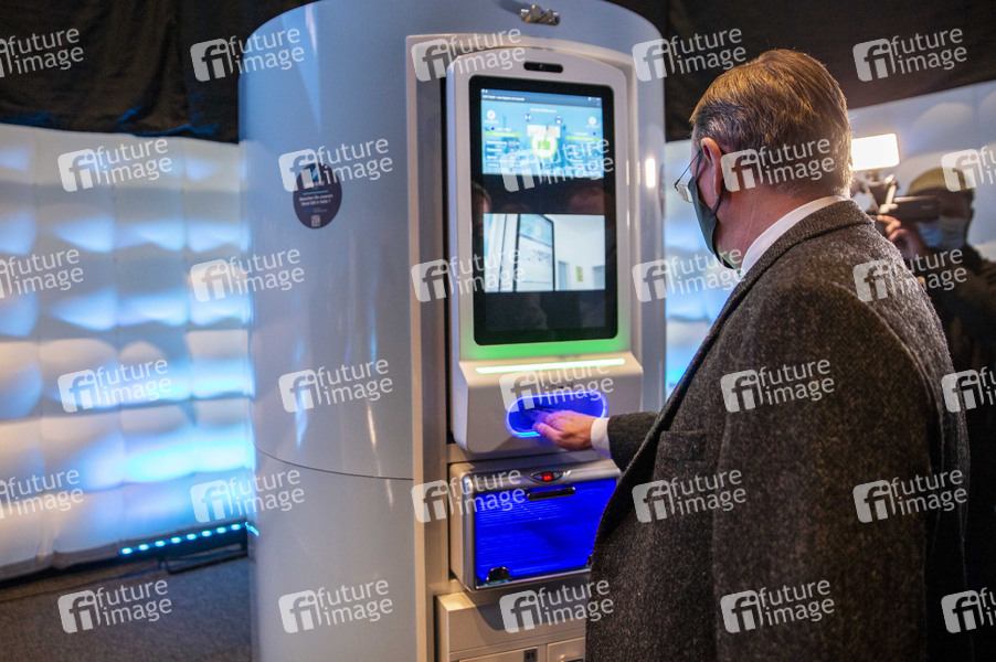 Politiker, Die Linke, Ministerpräsident von Thüringen, Ausstellung, Fair, Messe, Präsentation, Fachmesse und Konferenz für vorbeugende Corona-Schutzmaßnahmen, Corona, Sars-CoV-2, Covid-19, Coronavirus, Coronaviren, Corona-Virus, Coronakrise, Corona-Krise, Corona-Pandemie, Coronamaßnahmen, Corona-Schutz, Infektionsschutz, hybride Veranstaltung in Teil-Lockdown, Provention