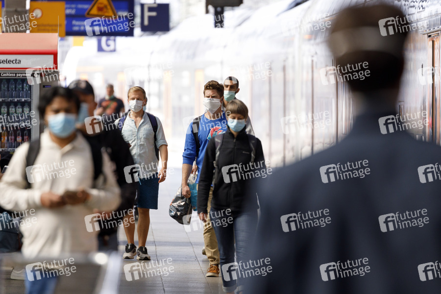 DB, Deutsche Bahn, Hauptbahnhof, Maskenpflicht in öffentlichen Verkehrsmitteln, öffentliche Verkehrsmittel, Bus, Busse, Bahn, Bahnen, Zug, Züge, maskiert, vermummt, Vermummung, NRW, Maske, Masken, Masken-Pflicht, Gesichtsmaske, Behelfsmaske, Behelfsmasken, Straßenbild, Öffentlichkeit, öffentlicher Raum, Maske tragen, Masken tragen, Mindestabstand, Lockerung der Corona-Maßnahmen, Tröpfcheninfektion, Spritzschutz, Eindämmung, Virenschutz, Übertragung, Maskenzwang, Bußgelder, Ordnungsgelder, Corona-Gesetze, Durchseuchung, immun, Immunität, Reproduktionszahl, Seuchenschutz, Virologie, Infektionsschutz, Atemschutz, Atemschutzmaske, Virenschutz, Schutzmaske, Schutzmasken, Atemschutzmasken, Maske, Masken, FFP1, FFP2, FFP3, FFP-Schutzklassen, Schutzklasse, Mundschutz, Mundschutzpflicht, Mund-Schutz, Mundschutz-Pflicht, Mund-Nase-Schutz, Mund-Nasen-Schutz, MNS, Ausbreitung, Corona-Schutz, Virus, Viren, Corona, Sars-CoV-2, Covid-19, Coronavirus, Coronaviren, Corona-Virus, Corona-Viren, Ansteckung, Ansteckungsgefahr, Epidemie, Pandemie, Infektion, Infektionen, schützen, Schutz, Maßnahmen, Neuansteckungen, Ansteckung, Coronakrise, Corona-Krise, Coronamaßnahmen, Corona-Schutz, Corona-Maßnahmen, Papiermaske, Papiermasken, Kontaktverbot, Ausgangsbeschränkungen, Mindestabstand, Ausgangssperre, Lockdown, Lock Down, Symbolfoto, Symbolbild