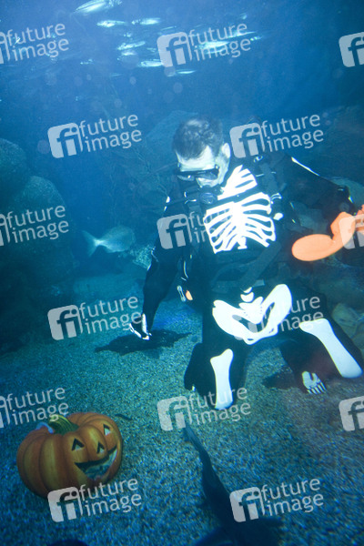 Unterhaltung, Entertainment, Taucher, Tauchen, Skelett, Fische, Sea Life Berlin, Halloween Aktion, Unterwasser, Tiere, Fische, Meeerestiere, Meeresbewohner
