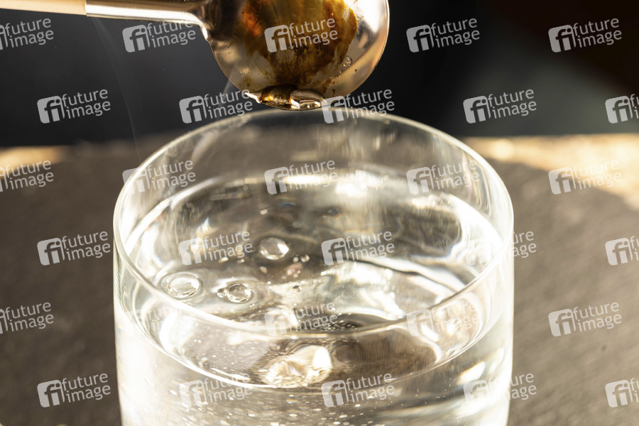 Zinn, Tradition, Schmelzen, Bleigießen-Verbot, Kerze, Schmelzlöffel, Kerzenflamme, Wasserglas, Silvesterbrauch, Jahreswechsel, Symbolbild, Themenbild
