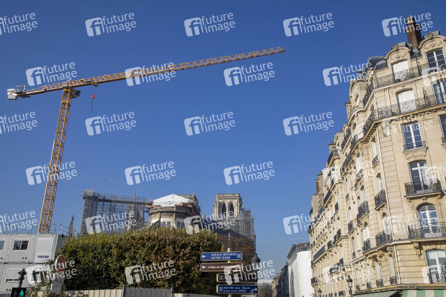 Nordseite beim Besuch der Kathedrale Notre-Dame de Paris, in der am 15. April 2019 ein Großbrand entstanden war. Viele Teile des Dachstuhls verbrannten sowie der weltberühmte Vieringsturm aus Holz fiel dem Feuer zum Opfer. Frankreichs Präsident kündigte nach dem Brand den sofortigen Wiederaufbau an.. Paris, 14.11.2021