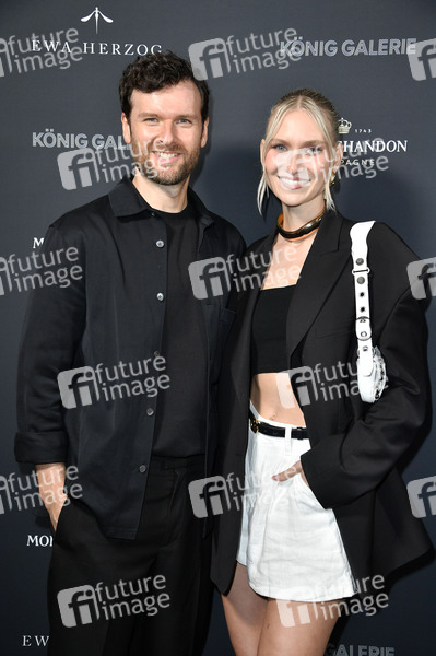 Daniel Grunenberg und Carolin Niemczyk von Glasperlenspiel bei der Ewa Herzog Fashion Show auf der Berlin Fashion Week S/S 2025 in der König Galerie. Berlin, 02.07.2024