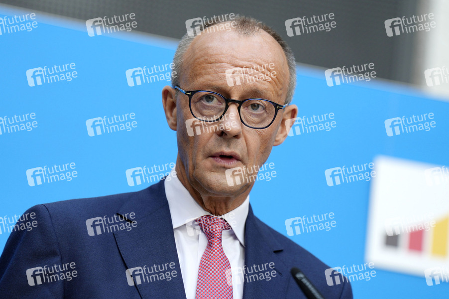 Friedrich Merz bei einer gemeinsamen Pressekonferenz von CDU und CSU zur Kanzlerkandidatur der Union in der Vertretung des Freistaates Bayern beim Bund. Berlin, 17.09.2024