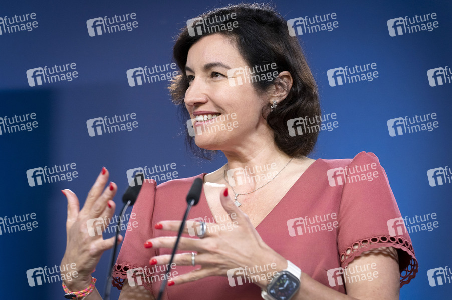 Dorothee Bär bei der Unterzeichnung von Absichtserklärungen zur Stärkung der Zusammenarbeit in Wissenschaft, Technologie und Innovation und zur Verlängerung der Raumfahrtkooperation im Bundesministerium für Forschung, Technologie und Raumfahrt. Berlin, 26.06.2025