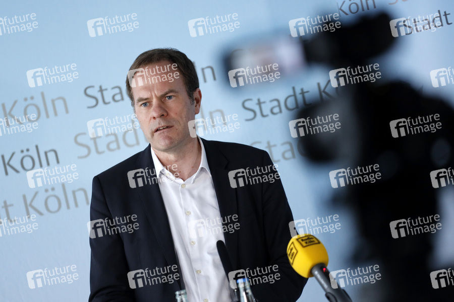 Stephan Keller bei einer Pressekonferrenz nach der Sitzung des Krisenstabs über die aktuelle Lage bezüglich der Coronakrise im Muschelsaal des historischen Rathauses. Köln, 01.04.2020