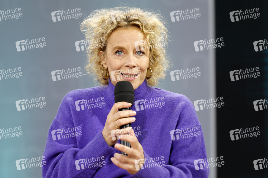 Katja Riemann im Gespräch zu ihrem Buch 'Zeit der Zäune' auf der ARD, ZDF und 3sat Literaturbühne auf der Leipziger Buchmesse 2024 auf dem Messegelände. Leipzig, 22.03.2024