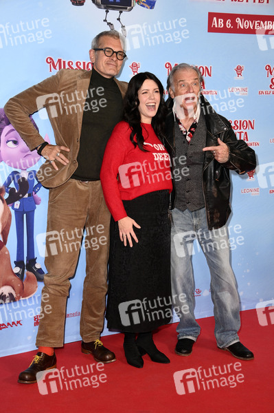Götz Otto, Malwanne und Wolfgang Fierek bei der Premiere des Kinofilms 'Mission Santa - Ein Elf rettet Weihnachten' im Kino in der KulturBrauerei. Berlin, 25.10.2025
