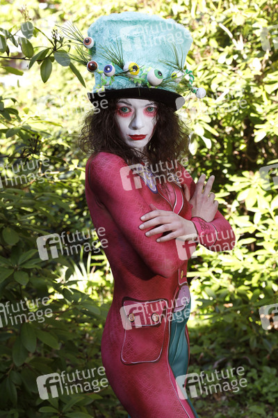 GEEK ART - Bodypainting and Transformaking: Alice im Wunderland Photoshooting mit Julia als verrückter Hutmacher im Czarnecki-Garten in Hameln. - Ein Projekt des Fotografen Tschiponnique Skupin und des Bodypainters und Transformakers Enrico Lein