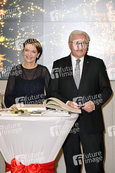 Bundespräsident Frank-Walter Steinmeier und Ehefrau Elke Büdenbender tragen sich nach der Aufzeichnung der ZDF-Sendung 'Weihnachten mit dem Bundespräsidenten' in das Goldene Buch der Stadt ein. Bernau bei Berlin, 16.12.2020