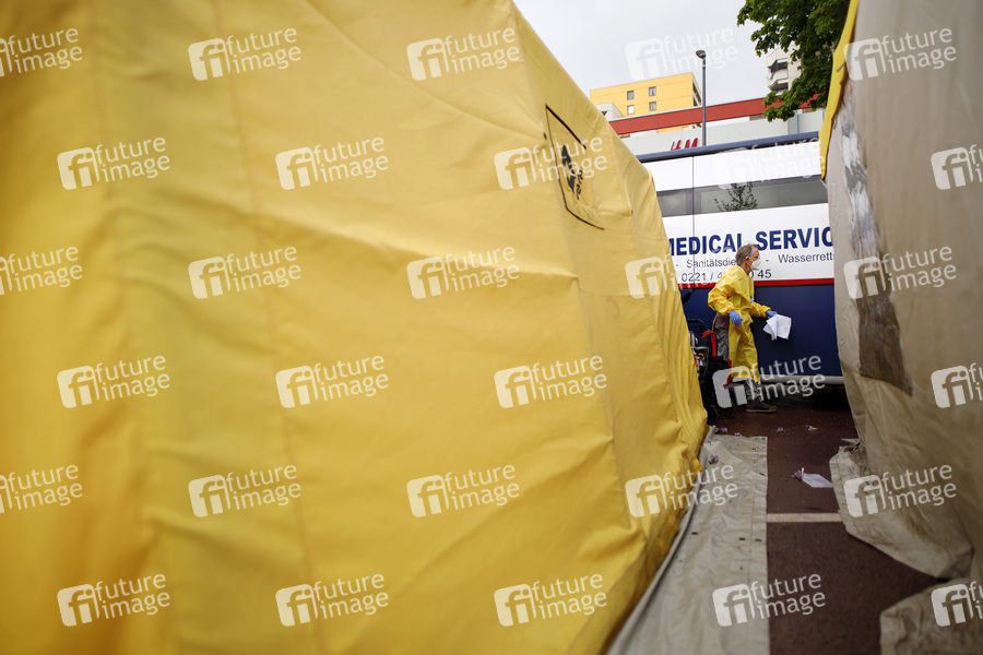 Die Stadt Köln beginnt, Menschen in Stadtteilen mit besonders hoher Inzidenz - sogenannte Hochinzidenzgebiete - zu impfen. In Chorweiler sind deshalb Corona-Impfteams unterwegs. Auch ein Impfbus kommt zum Einsatz. Köln, 04.05.2021