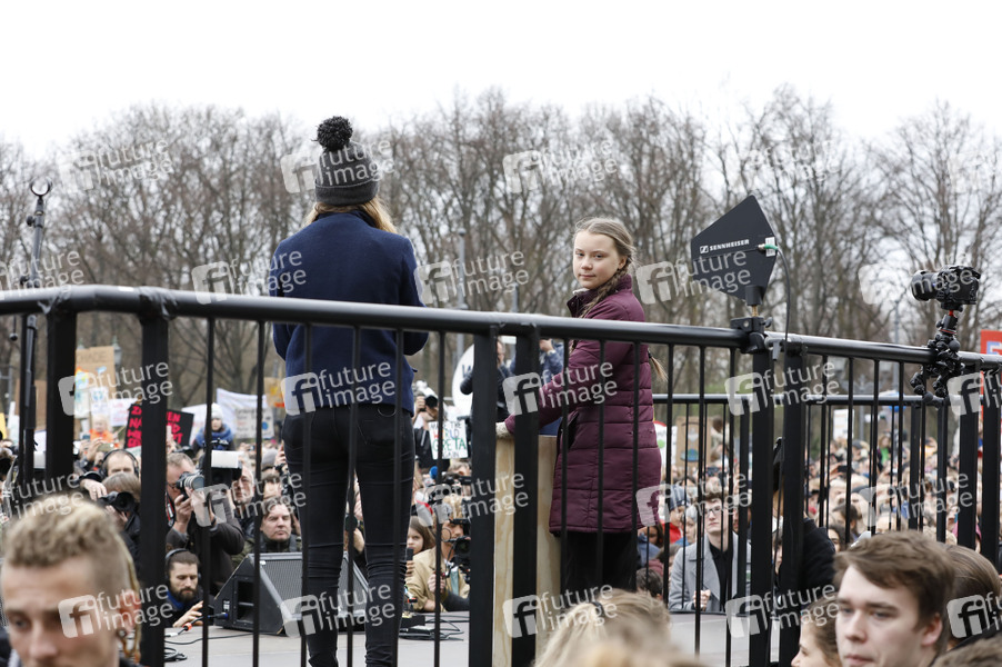 Luisa Neubauer und Greta Thunberg bei der 'Fridays for Future' Schülerdemonstration gegen die Klimapolitik vor dem Brandenburger Tor. Berlin, 29.03.2019