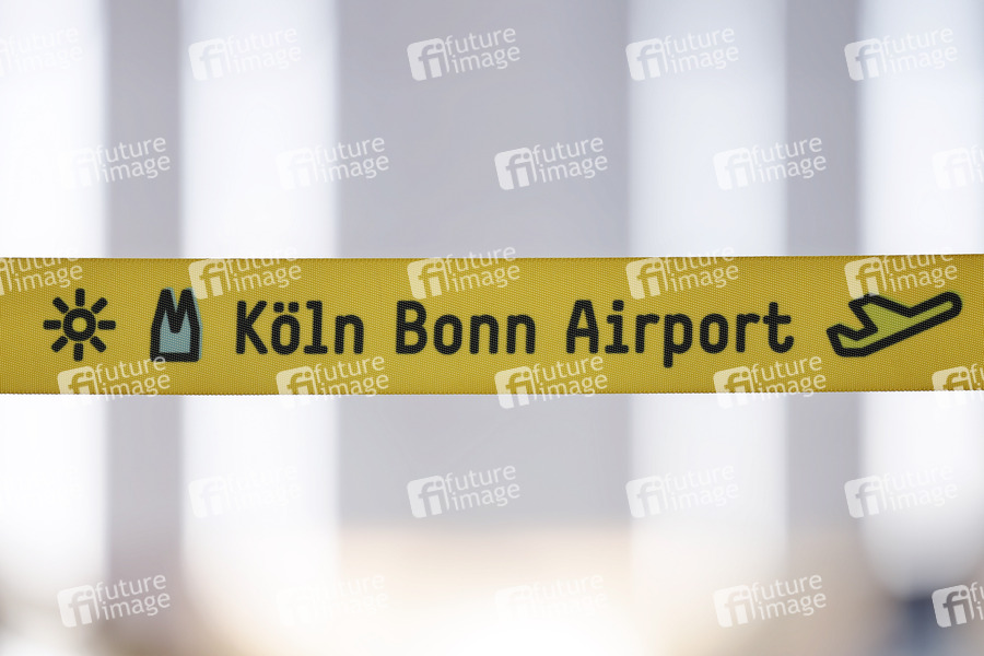 Das Logo des Köln Bonn Airport auf einem Absperrband. Der Flughafen Köln/Bonn 'Konrad Adenauer' ist ein internationaler Verkehrsflughafen in Köln. (Themenbild, Symbolbild) Köln, 23.02.2022