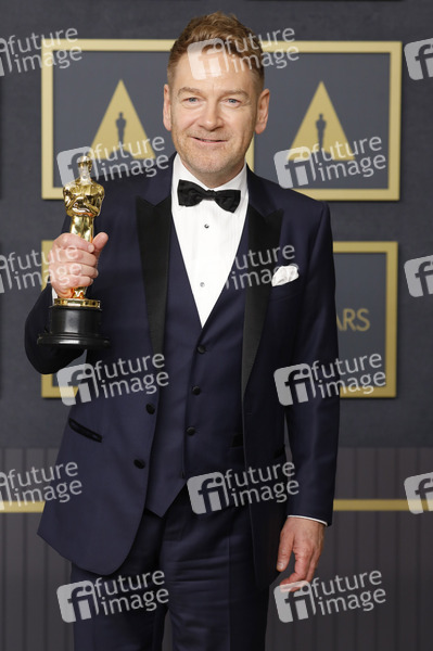 Kenneth Branagh mit dem Oscar für das beste Originaldrehbuch zu 'Belfast' im Press Room der Oscar Verleihung 2022 / 94th Annual Academy Awards im Hollywood & Highland Center. Los Angeles, 27.03.2022