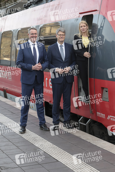 Alexander Schweitzer, Patrick Schnieder, Evelyn Palla bei der Inbetriebnahme der neuen Ahrtalbahn mit Sonderfahrt von Dernau nach Altenahr. Altenahr, 12.12.2025