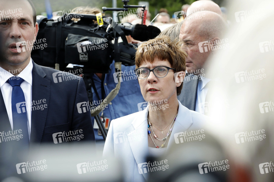 Annegret Kramp-Karrenbauer bei einer Gedenkveranstaltung der Brandenburger und Berliner CDU anlässlich des 58. Jahrestages des Mauerbaus an der Glienicker Brücke. Potsdam, 13.08.2019