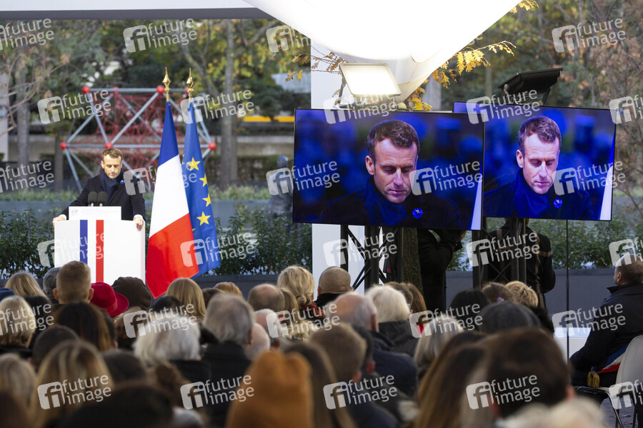 Politiker, Staatspräsident von Frankreich, La République en Marche, Impressionen, cérémonie d’inauguration du monument OPEX au Parc André Citroën, Politiker, Politik, Euroapolitik, Weltpolitik, Zeremonie, Feierlichkeiten, Feierlichkeit, Staatengemeinschaft, Internationale Organisationen, Verbündete, Militär, Gefallene Soldaten, Kriegseinsätze