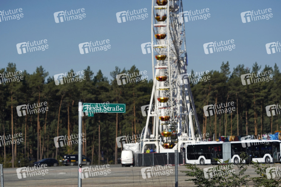 Riesenrad, Tesla Fest, Fest, Jahrmarkt, County Fair, US-Autobauer Tesla, News, Nachrichten, Tesla, Elektroauto, Elektrofahrzeuge, PKW, Auto, Model Y, Model 3, Großfabrik, Automobilhersteller, Autobauer, Elektromobilität, umweltfreundlich, vorläufige Genehmigung, Batteriefabrik, Großprojekt, Investition, Baugenehmigung, Vorab-Genehmigung, E-Auto-Fabrik, Umwelt, Klimaschutz, Baustelle, Bauen, Baubranche, Bau-Branche, Bauarbeiten, Großbaustelle, Bagger, Kran, Kräne, Baustelle, Batterie-Fabrik