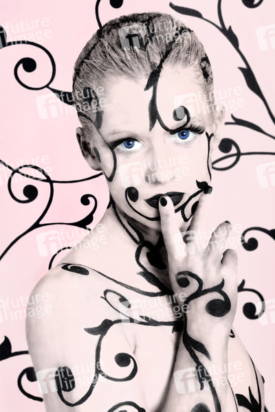 Bodypainting, Stoff, Erotik, Frau, nackt, drinnen, weiblich, Muster, erotic, woman, nude, indoor, female