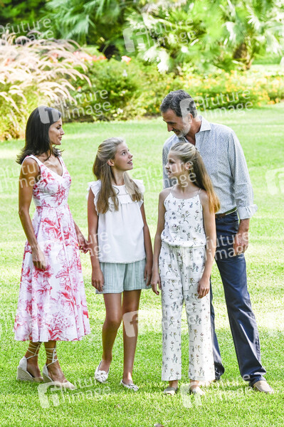 Königin Letizia von Spanien, Prinzessin Sofia, Prinzessin Leonor und König Felipe VI. von Spanien beim Sommer Photocall im Marivent Palace. Palma de Mallorca, 04.08.2019