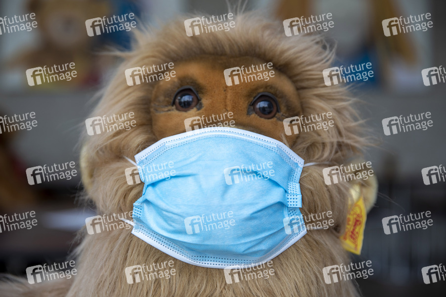 Symbolfoto, Symbolbild, Knopf im Ohr, Ohrfähnchen, Handwerkskunst, Kinderspielzeug, Teddybären, Kuscheltiere, Plüschtier, Haus- und Hoftiere, Großtiere, Wildtiere, Fantasietiere, Corona, Maskenpflicht, Mundschutz, 2 Meter Abstand