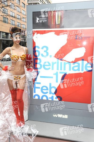 Micaela Schäfer präsentiert ihren persönlichen Berlinale Bären auf dem Boulevard der Stars, Berlin