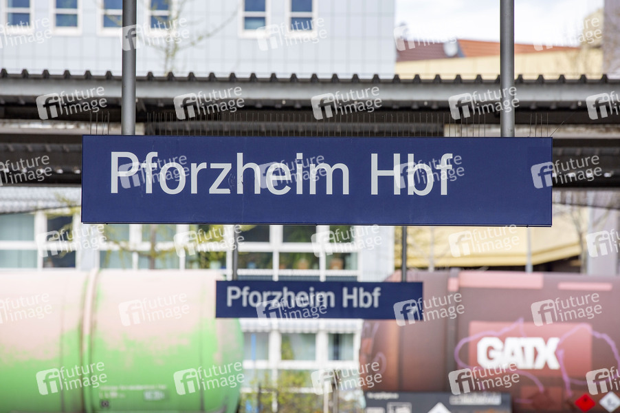 Der Pforzheim Hauptbahnhof in Baden-Württemberg ist ein Durchgangsbahnhof für Interregio- Regionalexpress- und Regionalbahnzüge. Pforzheim, 14.04.2021