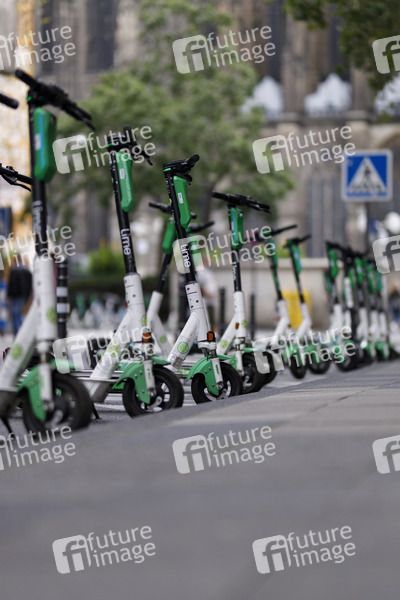 Escooter stehen nahe der Domplatte in der Kölner Innenstadt. Köln, 03.09.2020