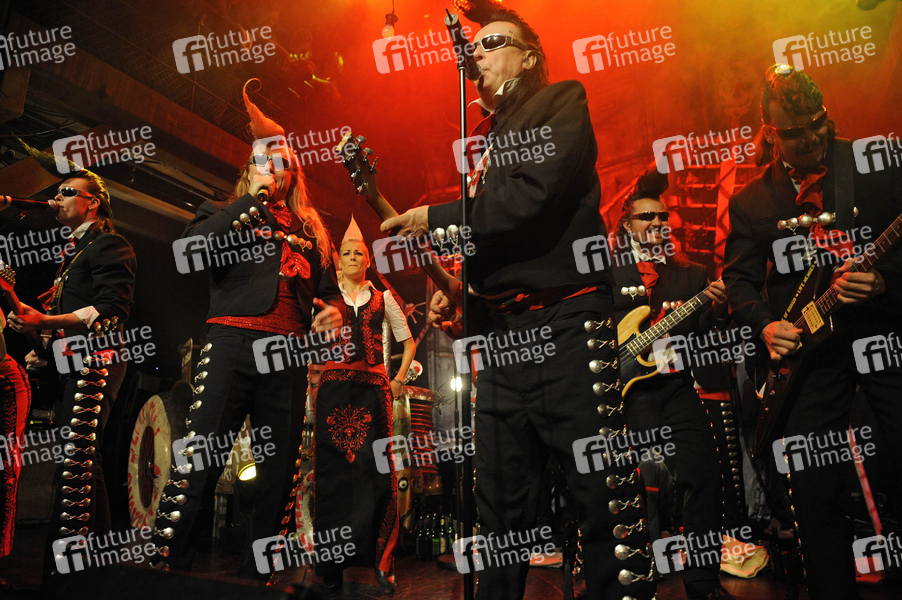 Leningrad Cowboys mit den Gogo-Tänzerinnen Baikonur Girlsam live in der Hamburger Fabrik