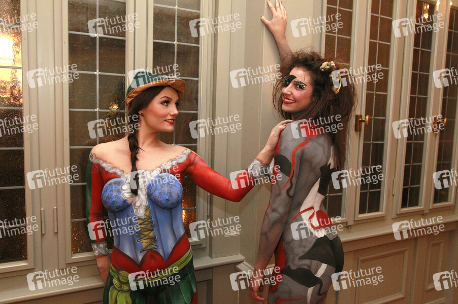 Rattenfänger Bodypainting mit den Models Lisa und Janina im Schlosshotel Münchhausen, Aerzen. Body Paint Künstler: Jörg Düsterwald