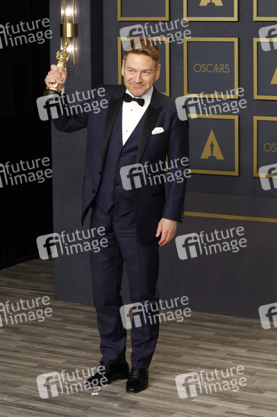 Kenneth Branagh mit dem Oscar für das beste Originaldrehbuch zu 'Belfast' im Press Room der Oscar Verleihung 2022 / 94th Annual Academy Awards im Hollywood & Highland Center. Los Angeles, 27.03.2022