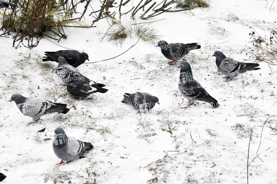 Tauben im Schnee am Nordbahnhof. Berlin, 07.02.2021