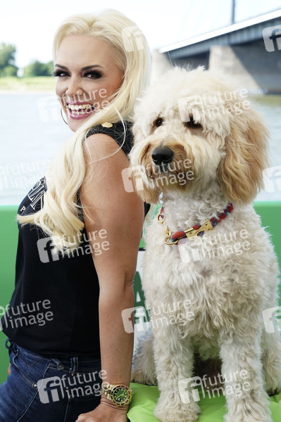 Daniela Katzenberger bei der Eröffnung einer schwimmenden Hundewiese auf einem 1.000 qm großem Ponton mit Rollrasen, Hundeparcours und Pop-Up-Store auf dem Rhein. Düsseldorf, 07.06.2019