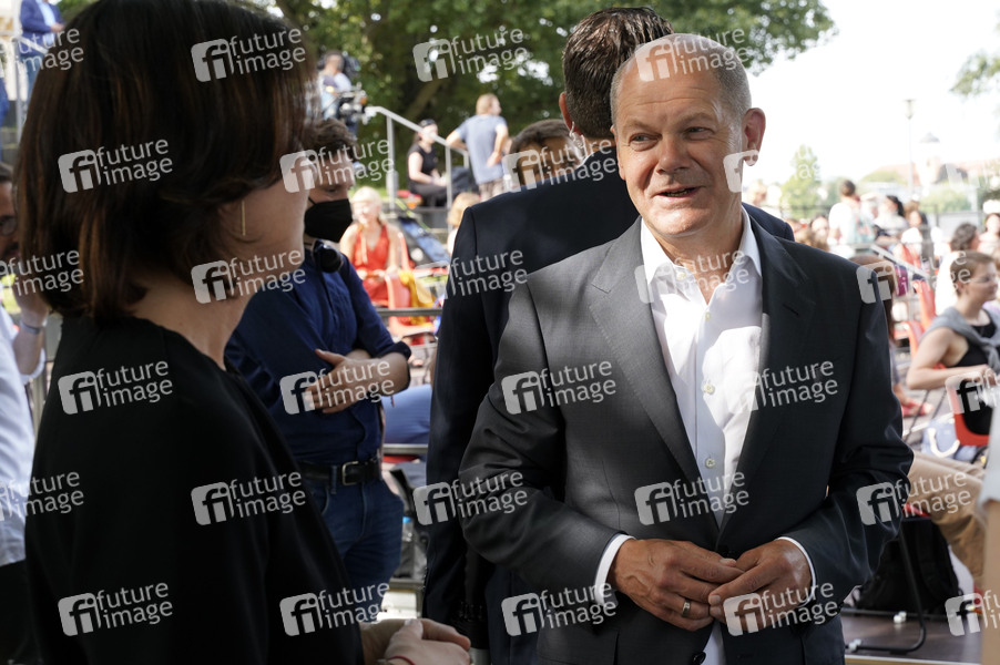 Annalena Baerbock und Olaf Scholz bei der Veranstaltung 'Frauen Stimmen Gewinnen' im Hans Otto Theater. Potsdam, 13.08.2021