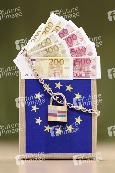 EU Krise, Europäische Union, Uneinigkeit, EU Etat, Finanzplanung, EU-Finanzplanung, Corona-Paket, Corona, Haushalt, Blokade des EU-Etats, Wirtschaft, Rechtsstaats-Gebot, EU-Haushaltspaket, EU-Krise, Corona-Hilfsfonds, blockieren, Corona-Geld, Politik, EU-Haushalt, Erpressung, Blockade, Blockadehaltung, Pandemie, EU-Hilfen, Hilfsgelder, Corona-Hilfe, Schloss, Vorhängeschloss, Kette, Euro, Geld, Banknoten, Geldscheine, Symbolbild, Symbolfoto