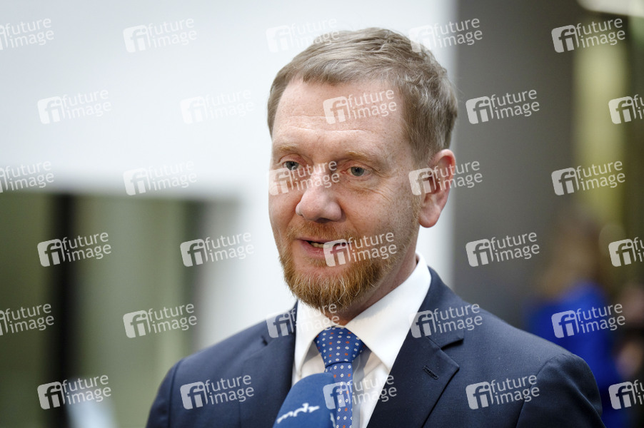 Michael Kretschmer beim Pressestatement am Rande der 1057. Sitzung des Bundesrates im Plenarsaal des Preußischen Herrenhauses. Berlin, 26.09.2025