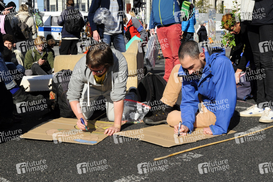 Demonstration, Demonstranten, Demo, Kundgebung, Protest, Aktion, Banner, Parolen, Politik, Umweltschutz, Klimawandel, Klimakrise, Blockade, weltweite soziale Bewegung