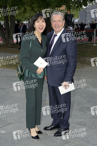 Gerhard Schröder mit Ehefrau So-yeon Schröder-Kim beim Staatsakt zu 75 Jahre Grundgesetz auf dem Forum zwischen Bundestag und Kanzleramt. Berlin, 23.05.2024