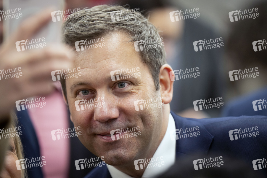 Lars Klingbeil bei der Fraktionssitzung der SPD-Bundestagsfraktion im Reichstagsgebäude. Berlin, 26.02.2025