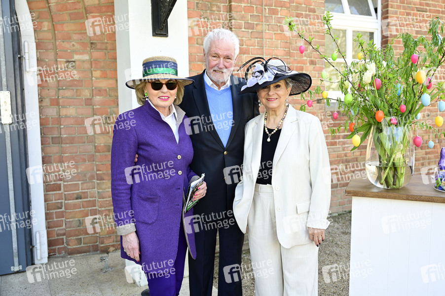 Tini Gräfin von Rothkirch, Klaus Lenk und Dagmar Frederic bei der Großen Saisoneröffnung 2025 auf der Rennbahn Hoppegarten. Berlin, 20.04.2025