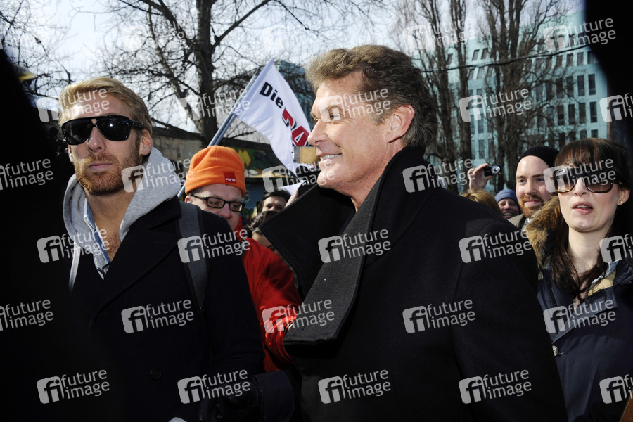 David Hasselhoff protestiert an der East Side Gallery gegen Abbau der Berliner Mauer. Berlin, 17.03.2013