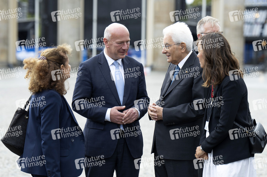 Kai Wegner und Sergio Mattarella beim Empfang des Präsidenten der Italienischen Republik zum gemeinsamen Gang in Richtung Brandenburger Tor. Berlin, 27.09.2024