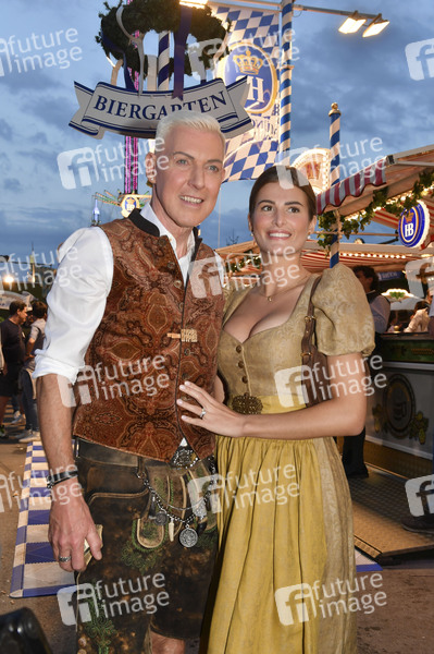 H. P. Baxxter mit Ehefrau Sara Bakhsh beim Almauftrieb in der Käfer Wiesn Schänke auf dem 190. Oktoberfest 2025 auf der Theresienwiese. München, 22.09.2025