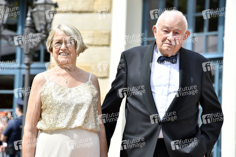 Günther Beckstein mit Ehefrau Marga Beckstein bei der Eröffnung der 112. Richard-Wagner-Festspiele 2024 mit der Neuinszenierung von 'Tristan und Isolde' im Bayreuther Festspielhaus. Bayreuth, 25.07.2024