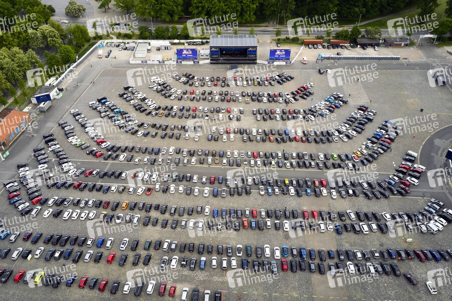 Zuschauer, Lufaufnahme, Luftbild, Auftritt, Bühne, Stage, live, Unterhaltung, Entertainment, Kultur, Corona, Sars-CoV-2, Covid-19, Coronavirus, Coronakrise, Corona-Krise, Corona-Pandemie, Coronamaßnahmen, Corona-Schutz, Kontaktverbot, Mindestabstand, Social Distancing, Abstand, Abstandhalten, Abstandsregel, Auto, Autokonzertreihe