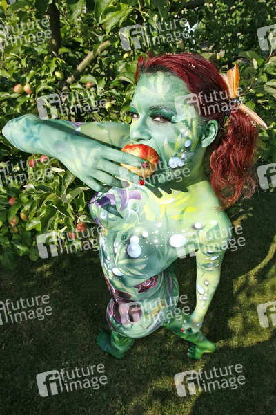 Bodypainting, Erotik, Frau, nackt, draußen, weiblich, Apfel, Apfelbaum, Baum, woman, nude, outdoor, female, erotic, apple, tree