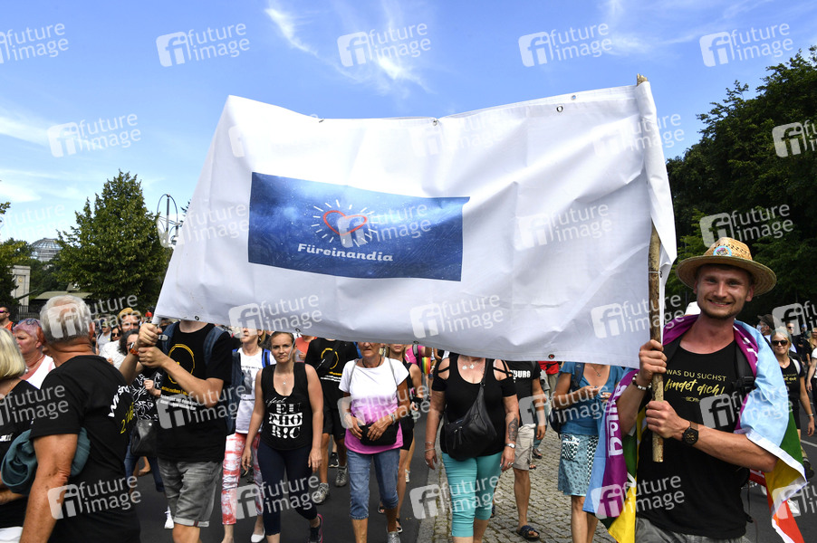 Mehrere Tausend Menschen bei der Demonstration und Kundgebung gegen die Corona-Politik der Bundesregierung unter dem Motto 'Das Ende der Pandemie - Der Tag der Freiheit' von der Straße Unter den Linden zur Straße des 17. Juni. Berlin, 01.08.2020